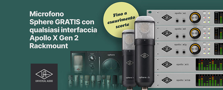 Dal 1° maggio all’8 giugno 2025, acquistando un’interfaccia Apollo X Gen 2 Rackmount in versione Essential o Studio, ricevi in omaggio un microfono Sphere Modeling di Universal Audio! La promozione varia in base al modello scelto: